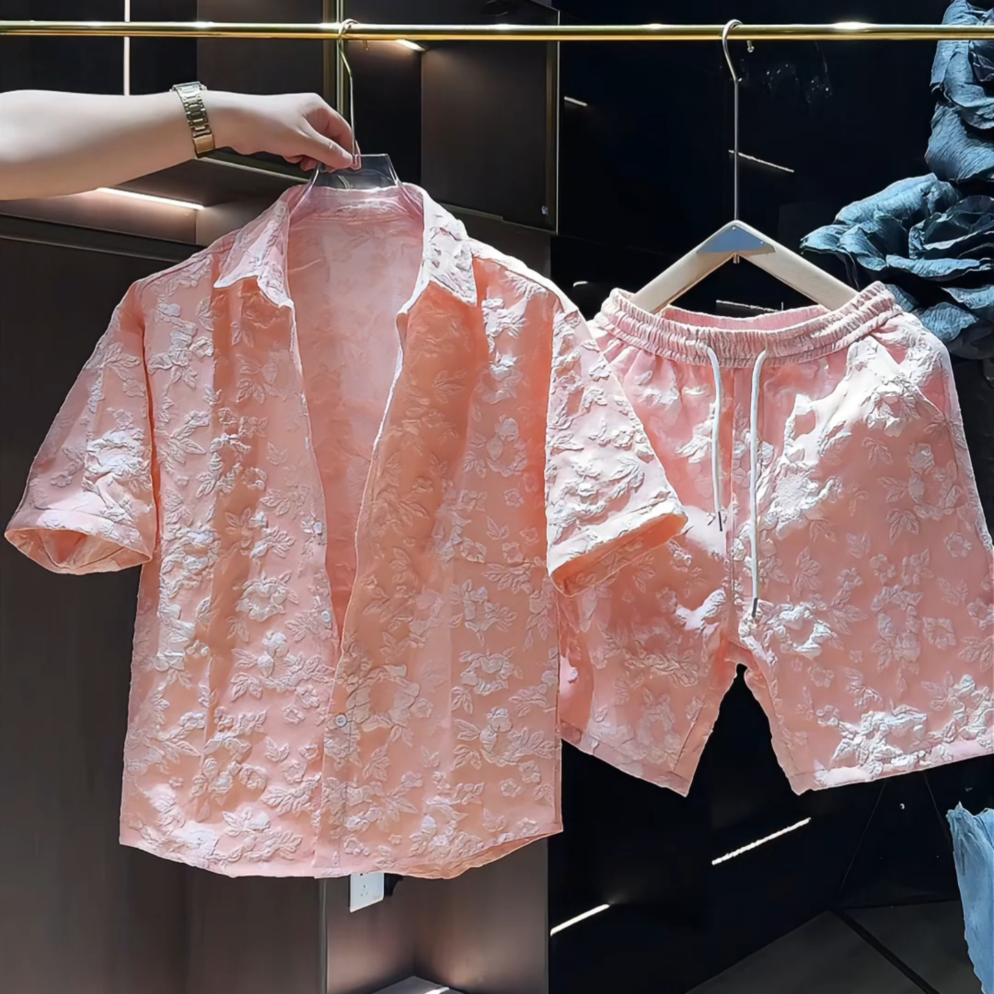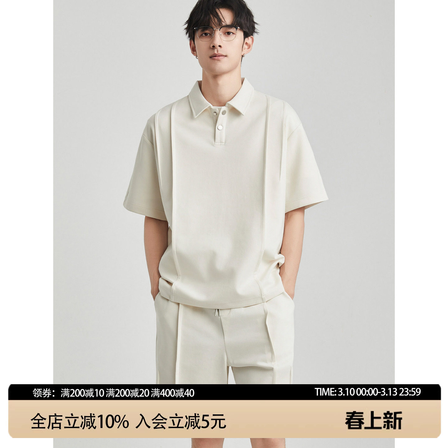 American pleated V-neck shoulder pads short-sleeved T-shirts draped scimitar trousers boys' suits are a complete set of cool and handsome summer outfits