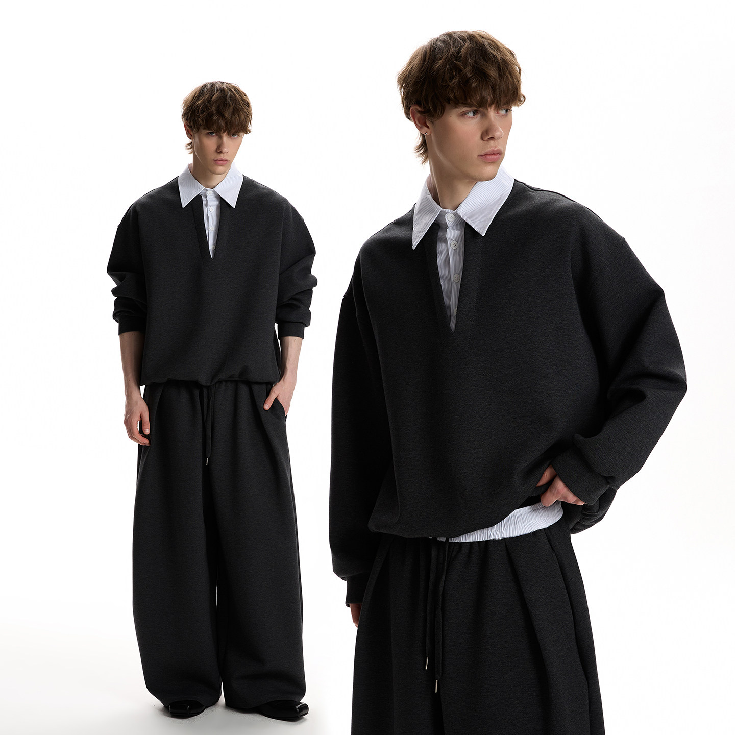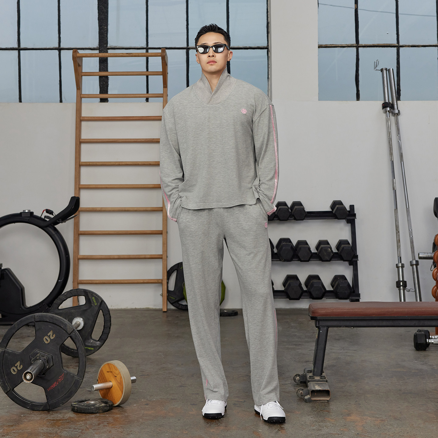 OXFREAK's "Set Series High Weight" grey heavy hooded sweatshirt men's loose wide-leg scimitar sweatpants