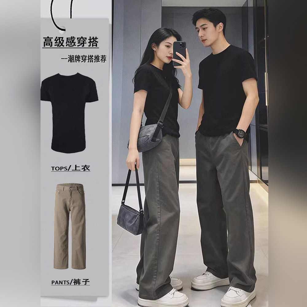 Light luxury men's American short-sleeved T-shirt to wear a complete set of 2026 summer casual straight-leg jeans two-piece trend