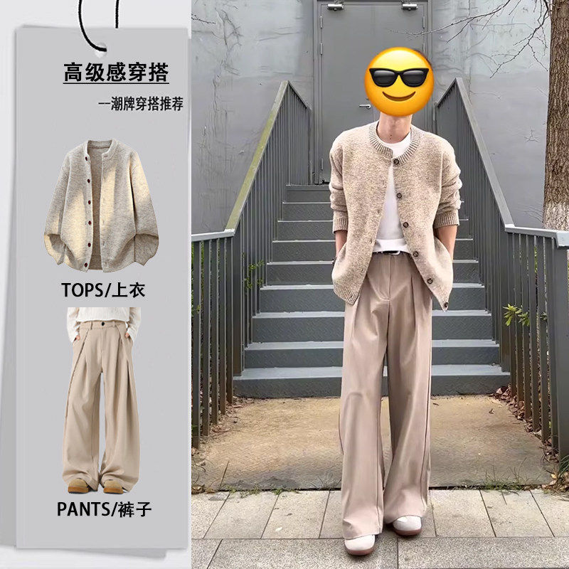 Zhang Linghe's same husband-like outfit suit, men's spring relaxation cardigan, sweater, cleanfit, scimitar trousers