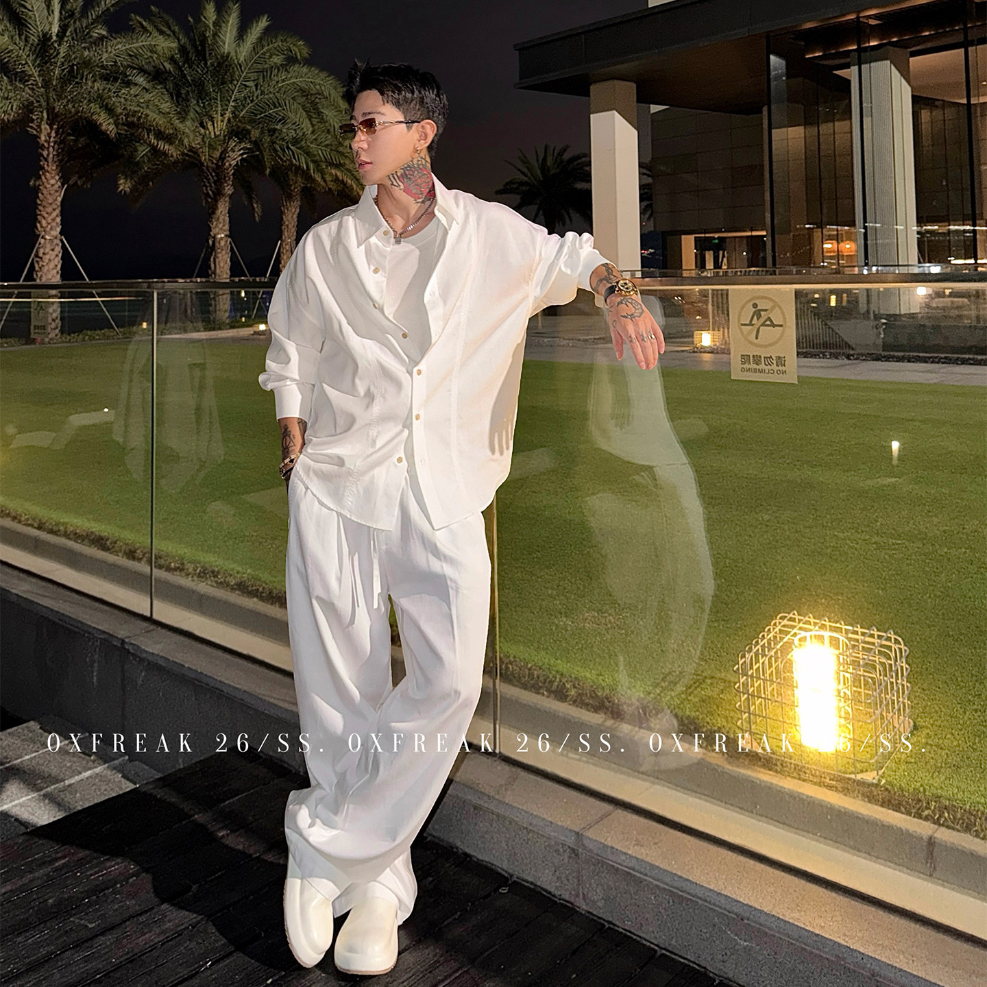 OXFREAK "Mercerized Tencel Blend" Old Money Style Suit Men's Spring Long Sleeve Shirt Straight Loose Pants