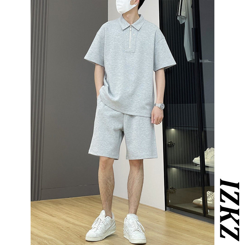 izkz high-end casual sportssuit men's new summer short-sleeved T-shirt polo shirt shorts loose two-piece set