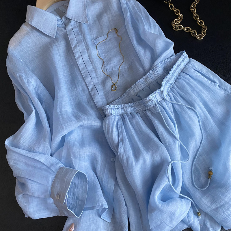 2025 Spring and Autumn Fashion Versatile Old Money Style Shirt Shorts Cotton and Linen Two-Piece Plus Size Men's and Women's Loose Suit