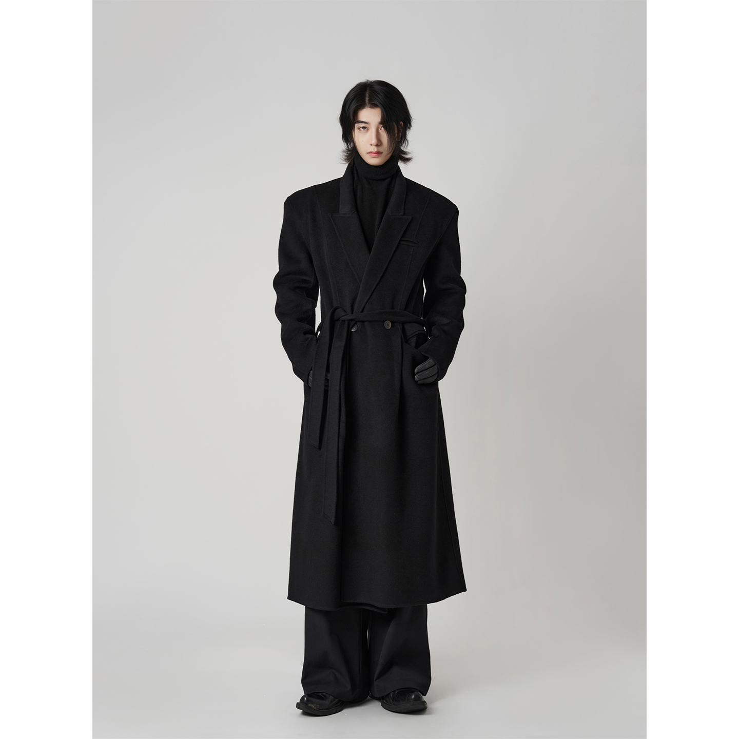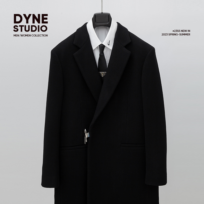 DYNE STUDIO High Quality Black Wool Long Lock Coat Unisex Jacket Men's 8959