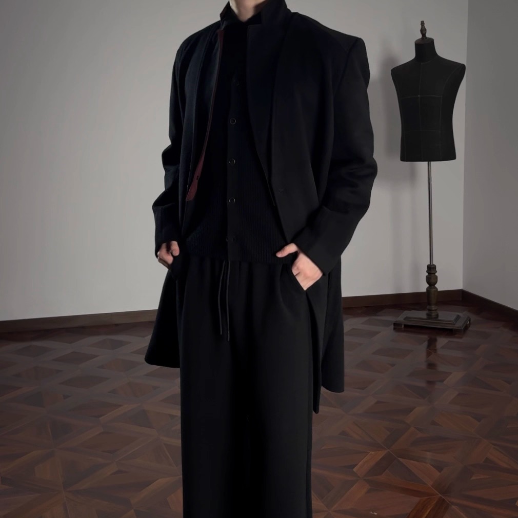 -EvanXX original Dark Wind 101 wool military cloth plain board pure black tiger remnant dream coat