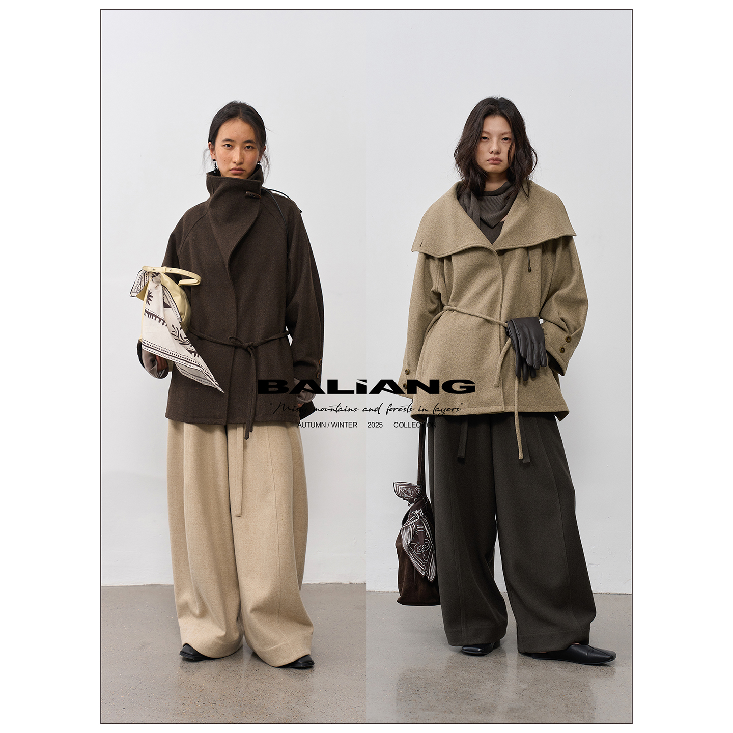 BALIANG "Beam" Rin 'bitter' mid-length horn buckle braided rope stack collar woolen coat jacket