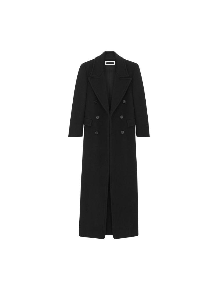 ROKKIHU Black double-breasted long woolen coat women's fall and winter high-end suit neck over-the-knee slimming jacket