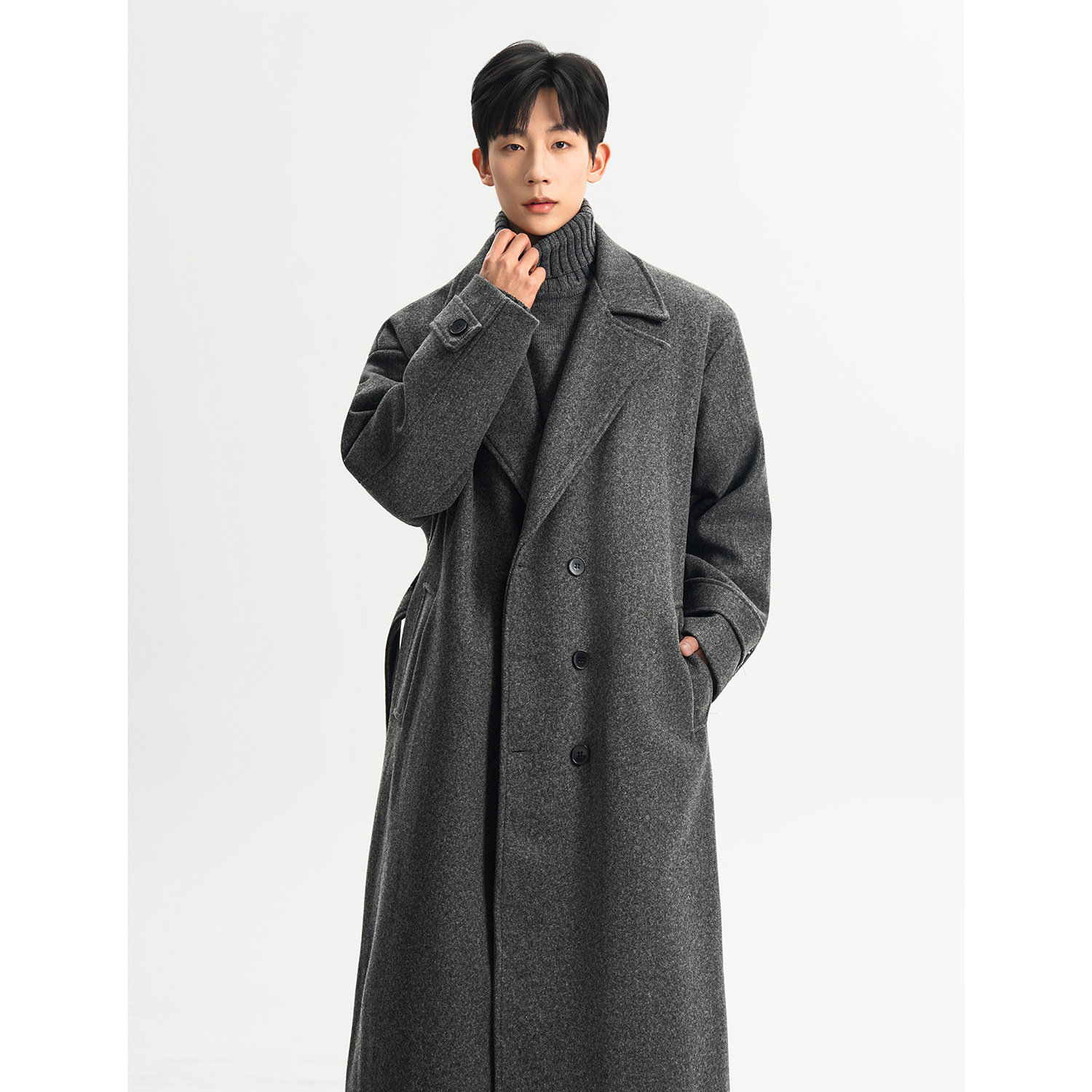 Gray woolen coat men's mid-length winter thickened warm over the knee high-end trend tweed trench coat jacket for men