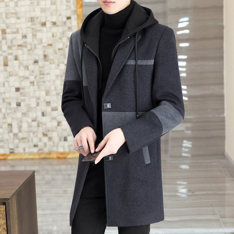 Autumn and winter reversible wool coats, men's mid-length youth slim non-cashmere woolen double-breasted trench coats, over the knee coats