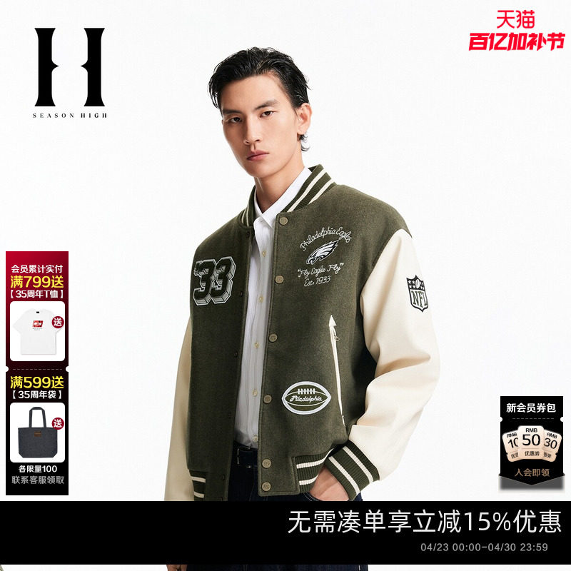 SEASON HIGH Men's NFL Co-branded Spring Woolen Coat 2026 Trend Eagles Patchwork Jacket