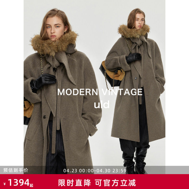 ULD/black label ofg Finnish snow forest festive hoop wool hand-toned cloud feel detachable fur collar coat