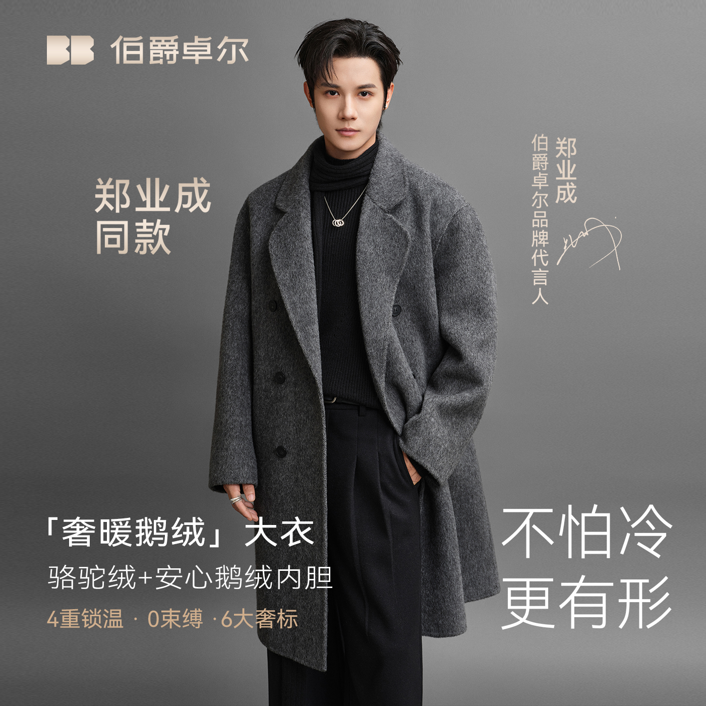 Zheng Yecheng star's camel velvet graphene goose down liner reversible dweed coat Earl Zall wool jacket