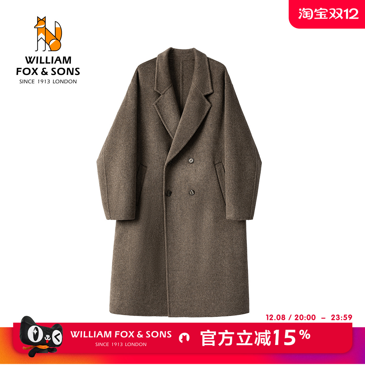 William Fox 25 Fall/Winter Classic Vintage Double-Breasted 100% Full Wool Reversible Tweed Long Coat for Men and Women