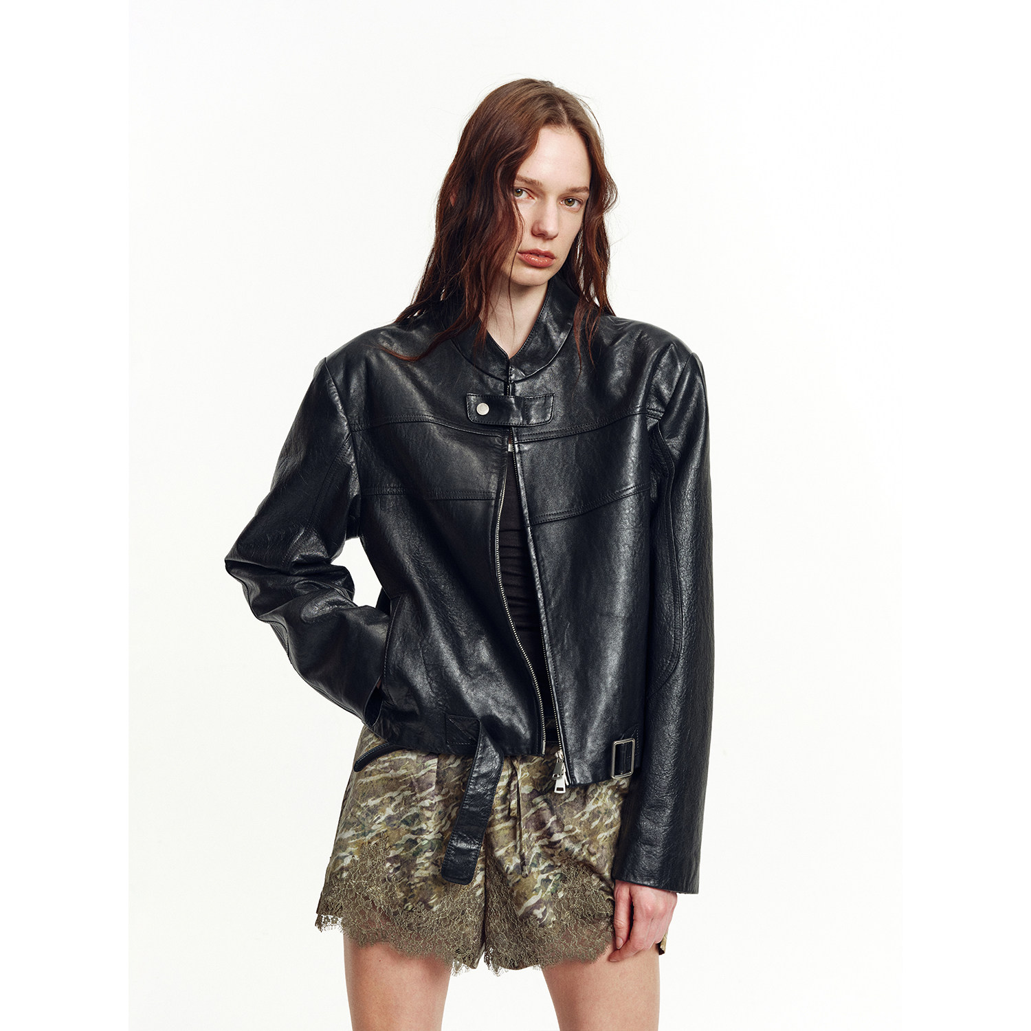 MEIYANG second-hand No. 2 leather jacket 26 spring amber streamer sheepskin leather stand-up collar jacket - Monday