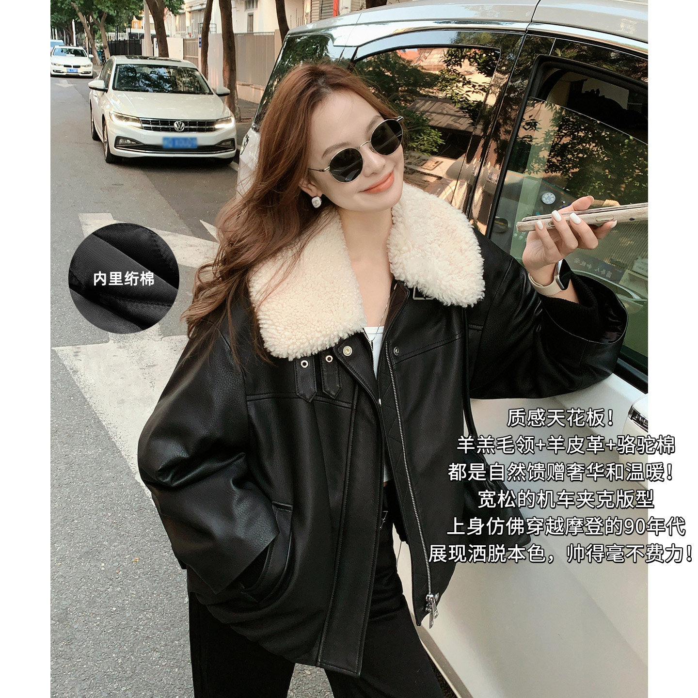 Yang Xiaoyao's old money leather jacket retro imported high-end cashmere leather jacket women's jacket short leather jacket spring new style