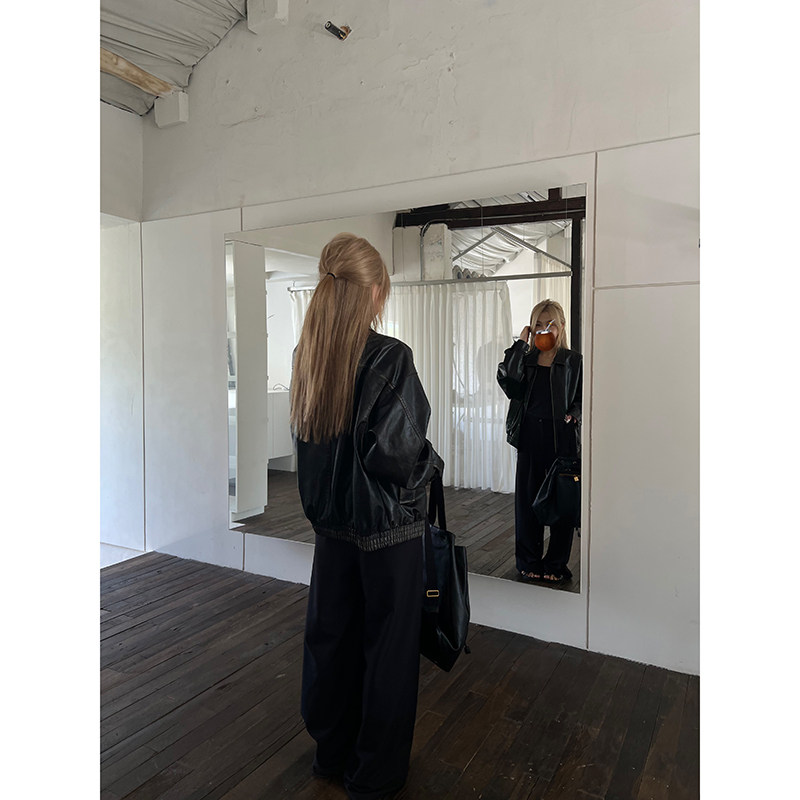 Letm Geha vintage 'vintage soft simulated leather texture large silhouette handsome leather jacket jacket for women
