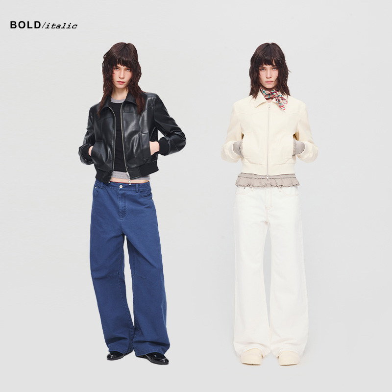 BOLD italic Straight shoulder short eco-friendly leather jacket women's double zipper design sense slimming lapel jacket spring