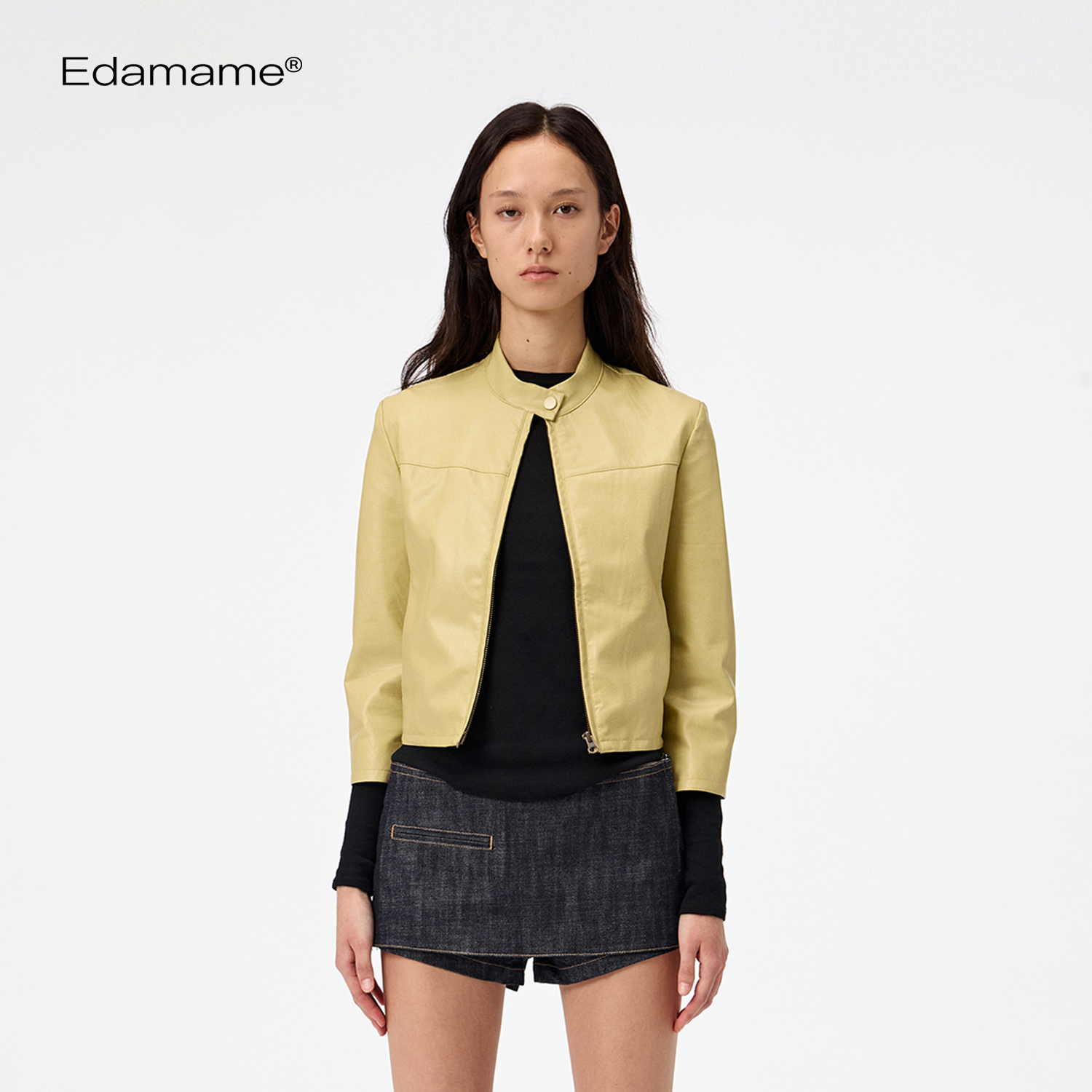 EMM Vintage Three-Quarter Sleeve Straight Shoulder Slim Stand Collar Leather Jacket Leather Jacket