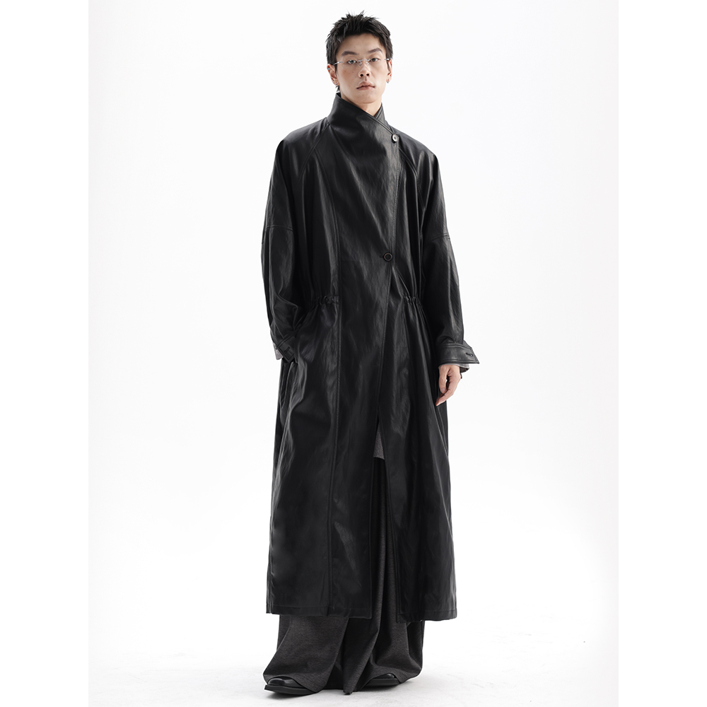 APOZi collection Prelude to Mountains and Seas Tall PU Leather Jacket Long Trench Coat Coat Woman