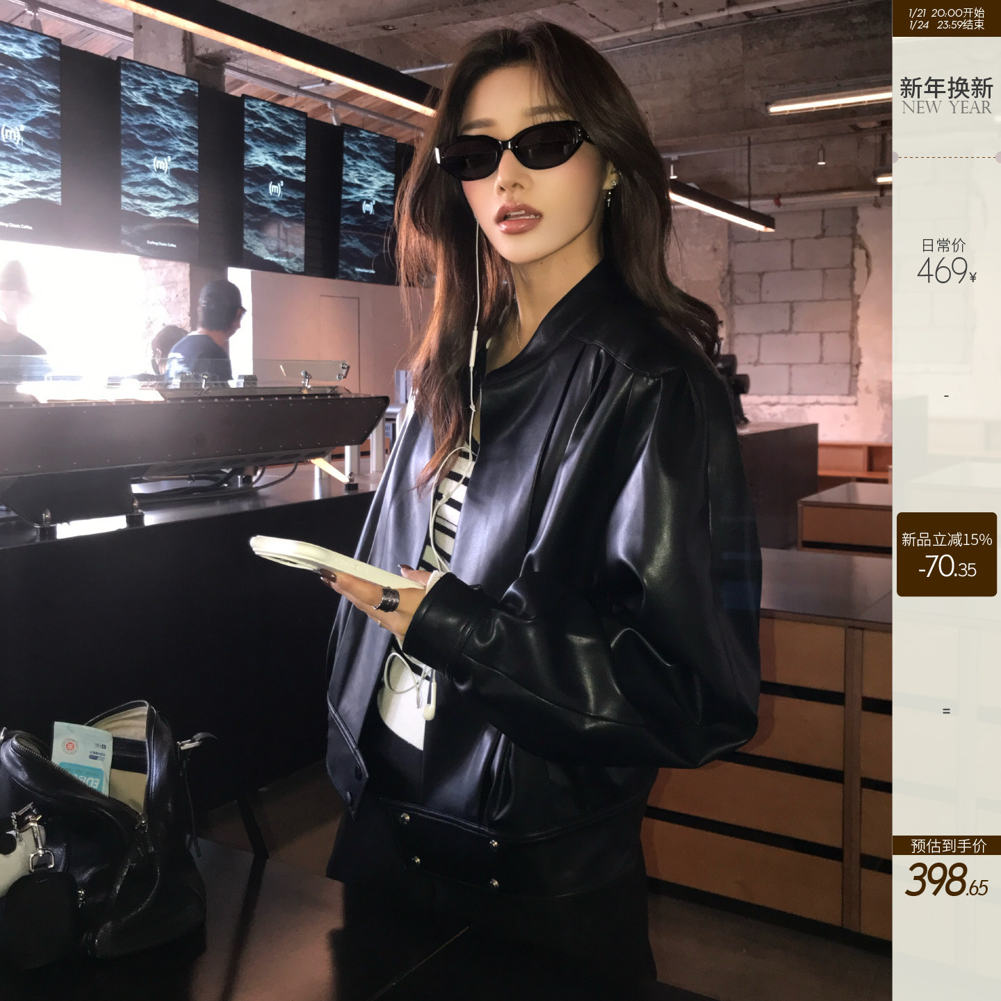 pusumede dusk overture American retro PU leather jacket women's high-end loose motorcycle short leather jacket
