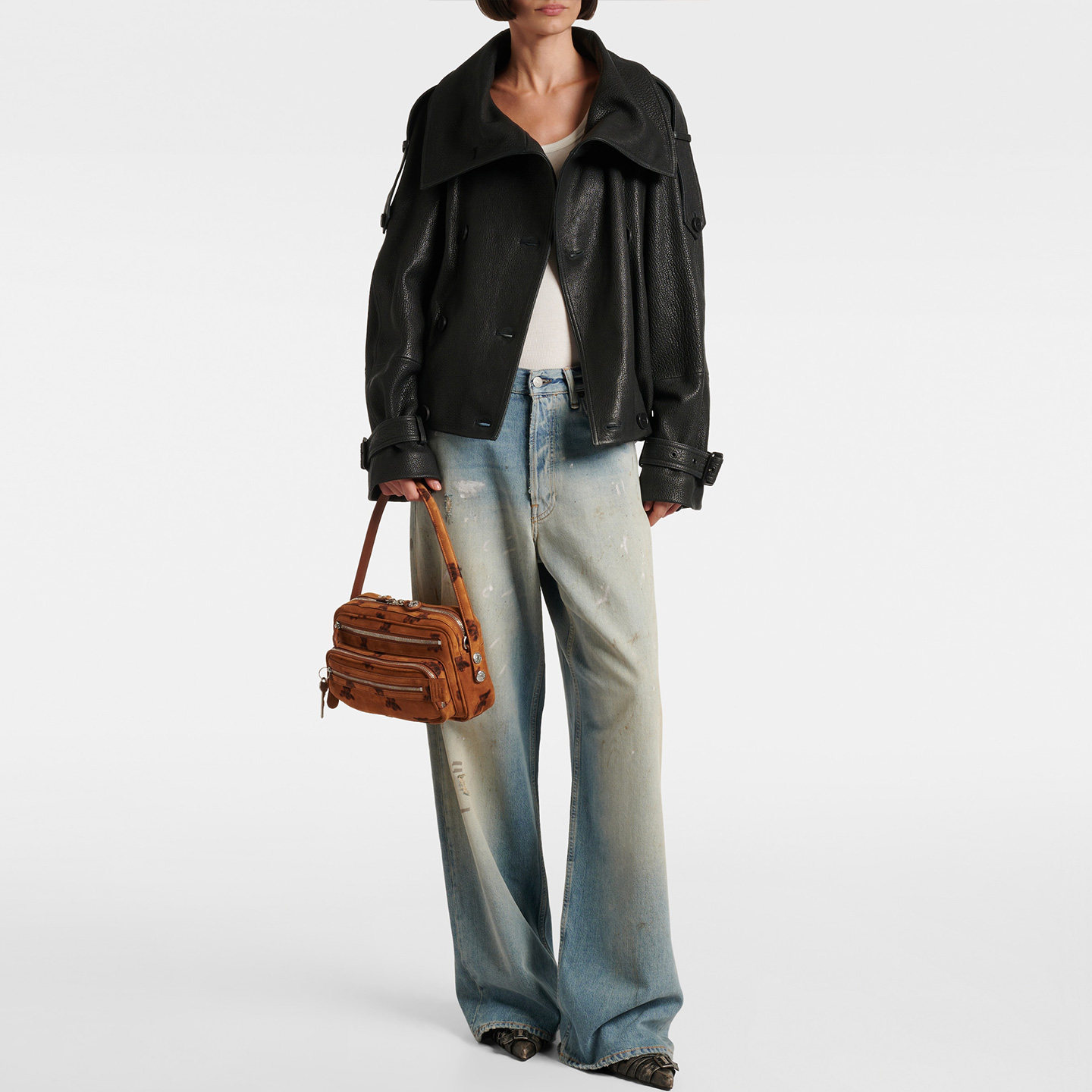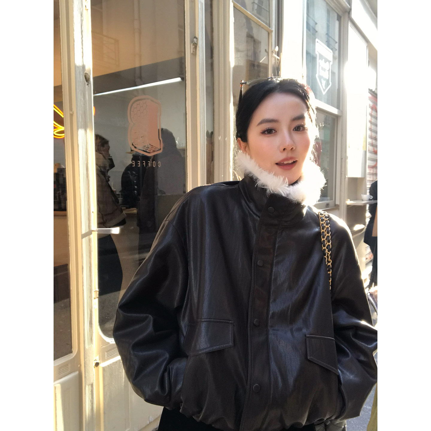 AC's new 2025 leather jacket for women this year is a casual loose double-breasted cool cropped jacket