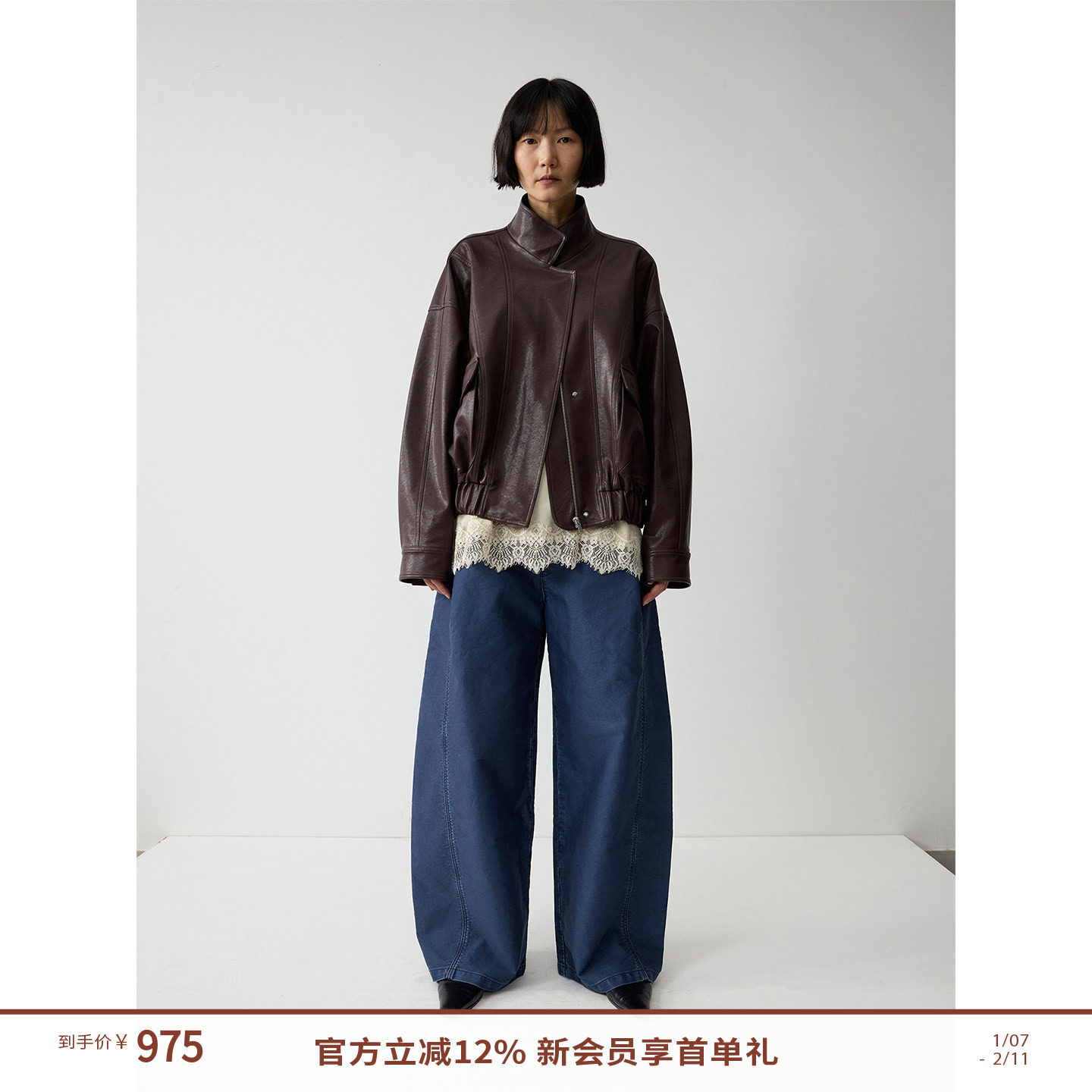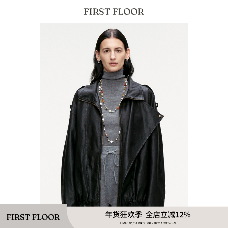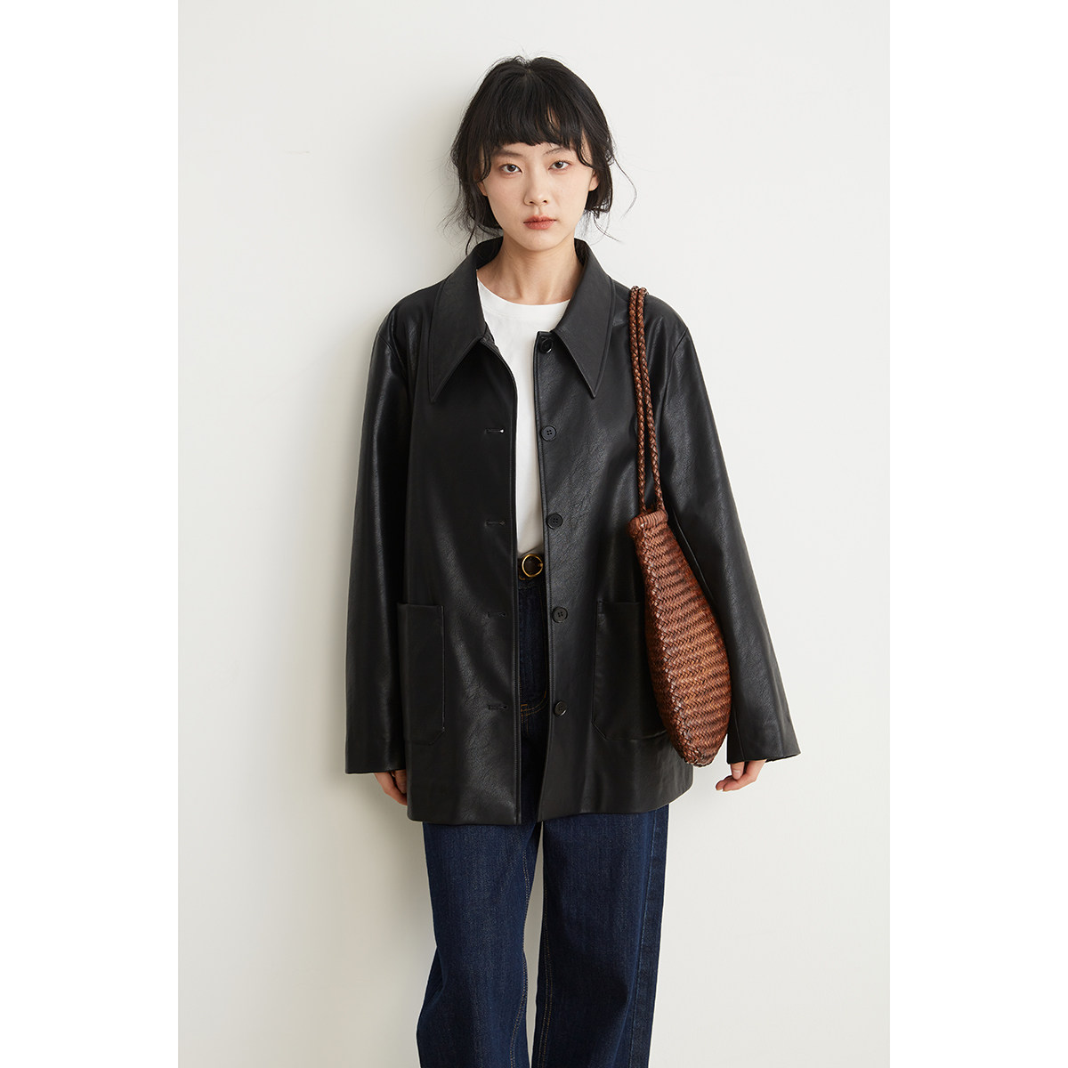 MADE NOTHING leather jacket 012 heavy industry autumn double collar lapel black leather jacket loose American motorcycle jacket women