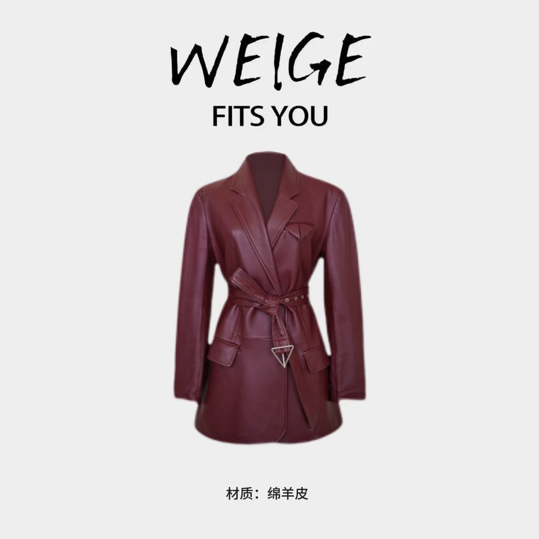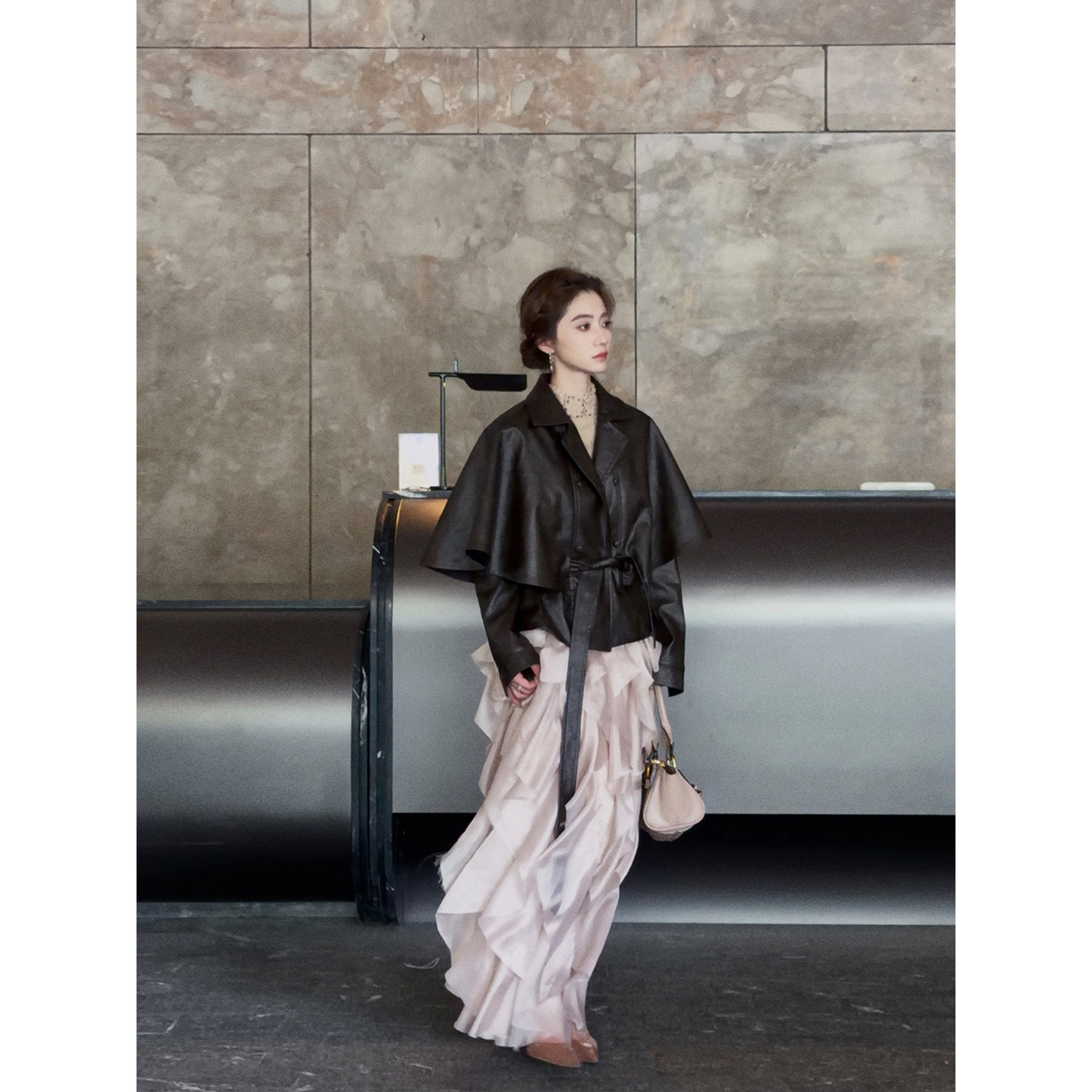 cunblvd always exists temperament design sense casual shawl leather jacket short lapel slimming lace-up jacket for women