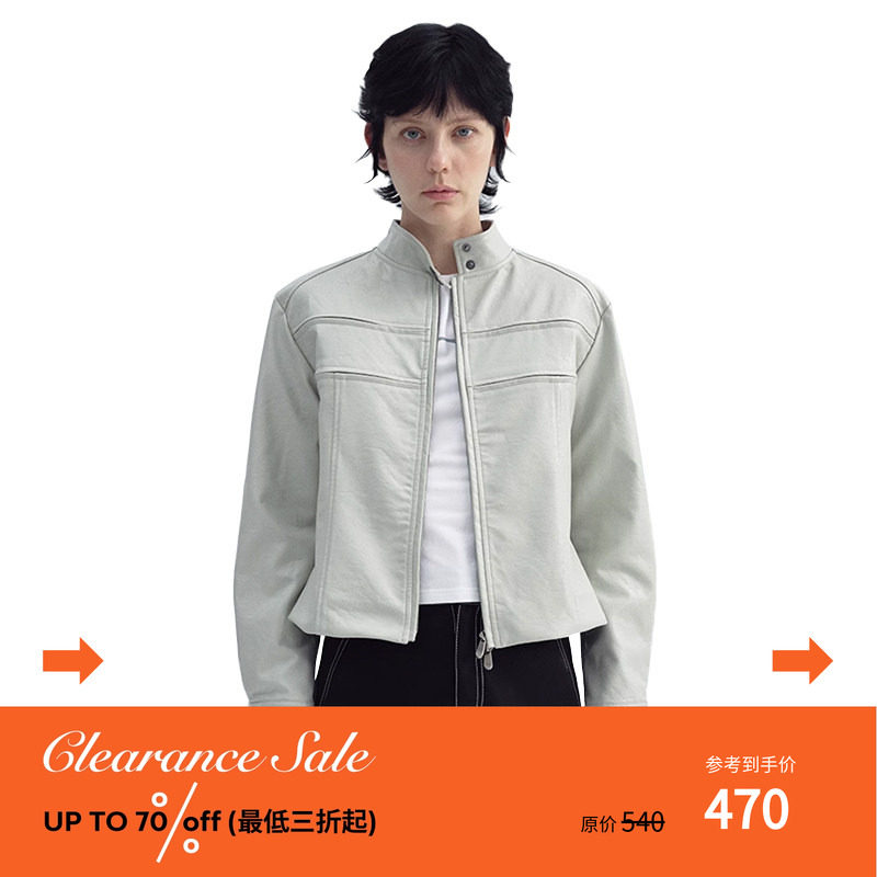 Nomnonnomme Vintage Casual Fit Short Zip Split Leather Jacket Jacket Coat