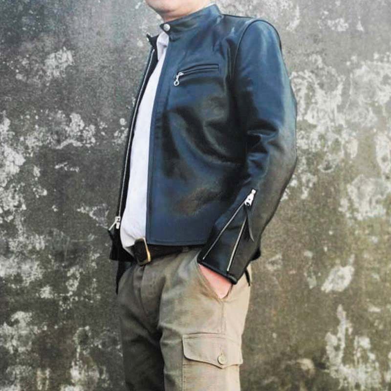 G FOR INNERTHOUGHT Spanish calfskin zipper leather jacket leather jacket motorcycle short men
