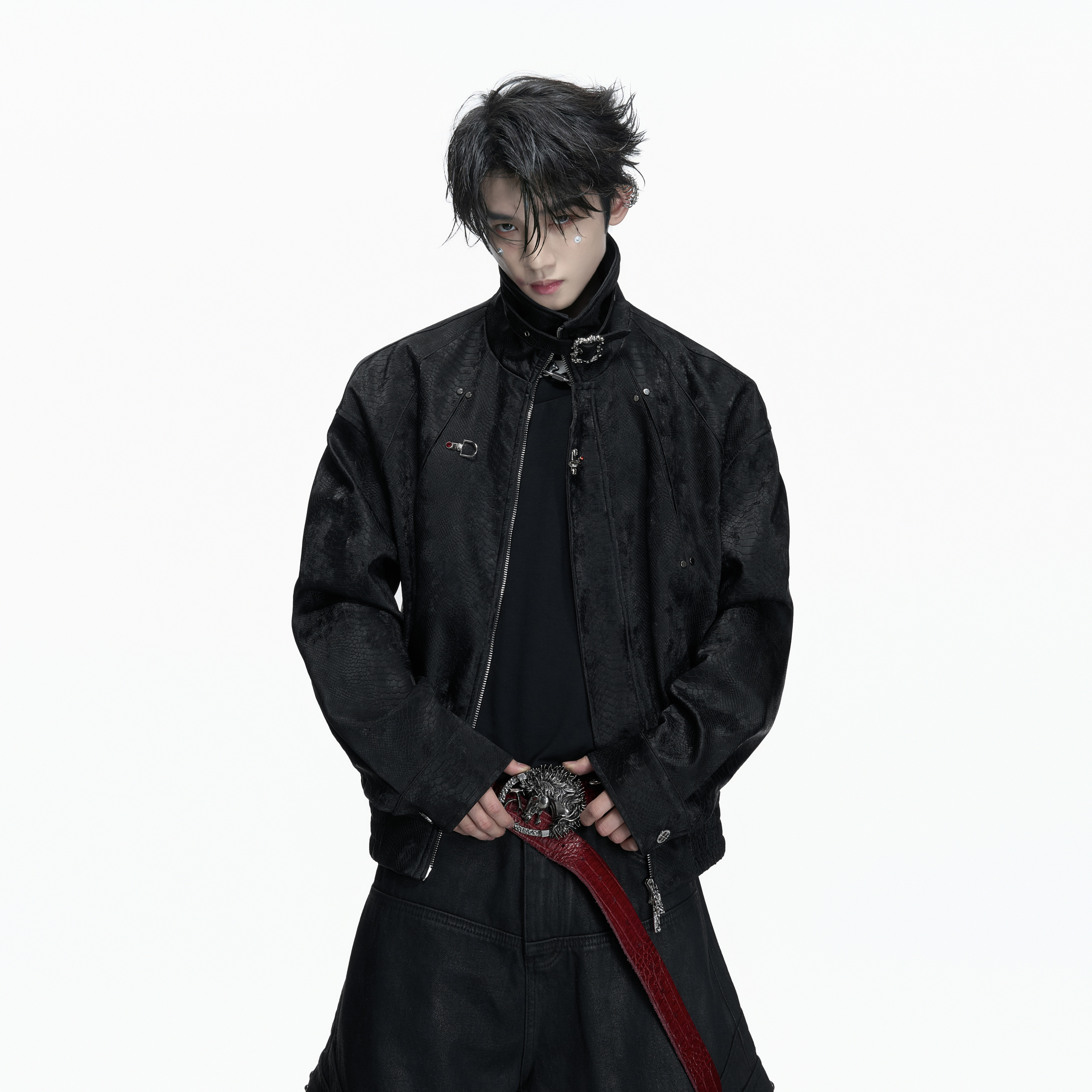 ArguE original niche crocodile print shoulder pads PU leather jacket splicing design jacket high-end top for men