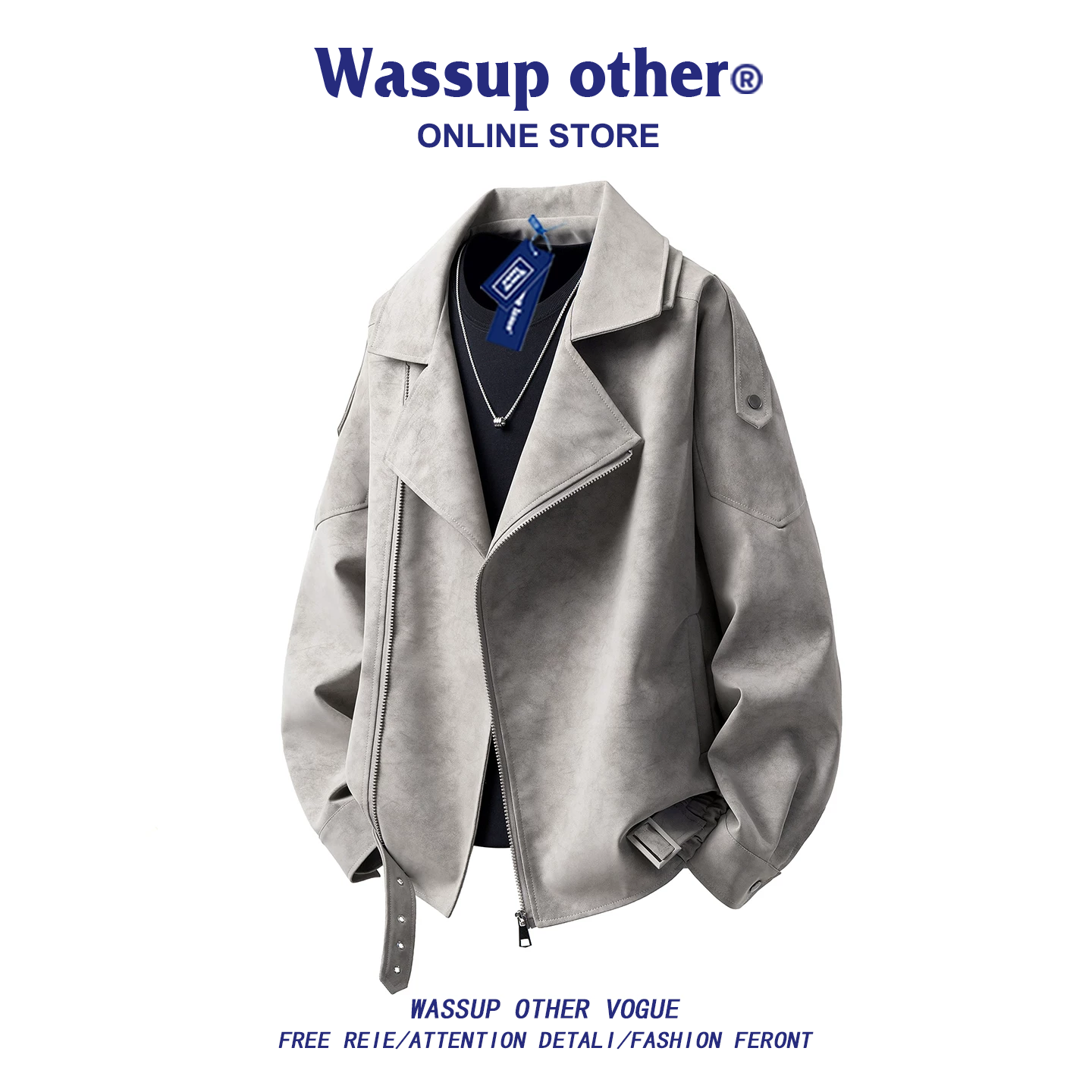 WASSUP OTHER American retro lapel leather jacket men's spring and autumn short solid color ruffian handsome leather jacket jacket