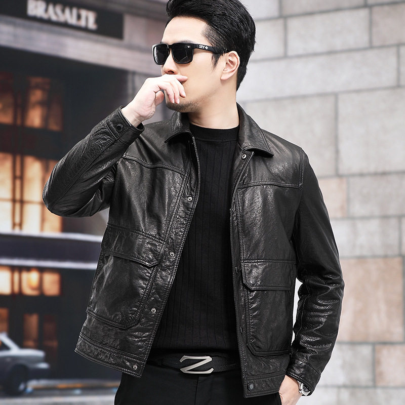 [Sheepskin] Navigare sailboat black casual leather jacket men's new lapel leather jacket