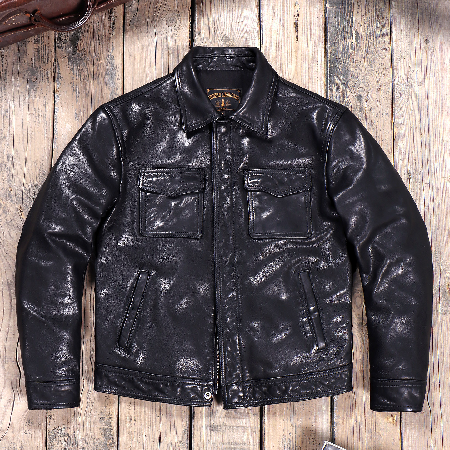American vintage PU leather jacket men's spring and autumn loose high street Maillard lapel baseball jacket couple jacket