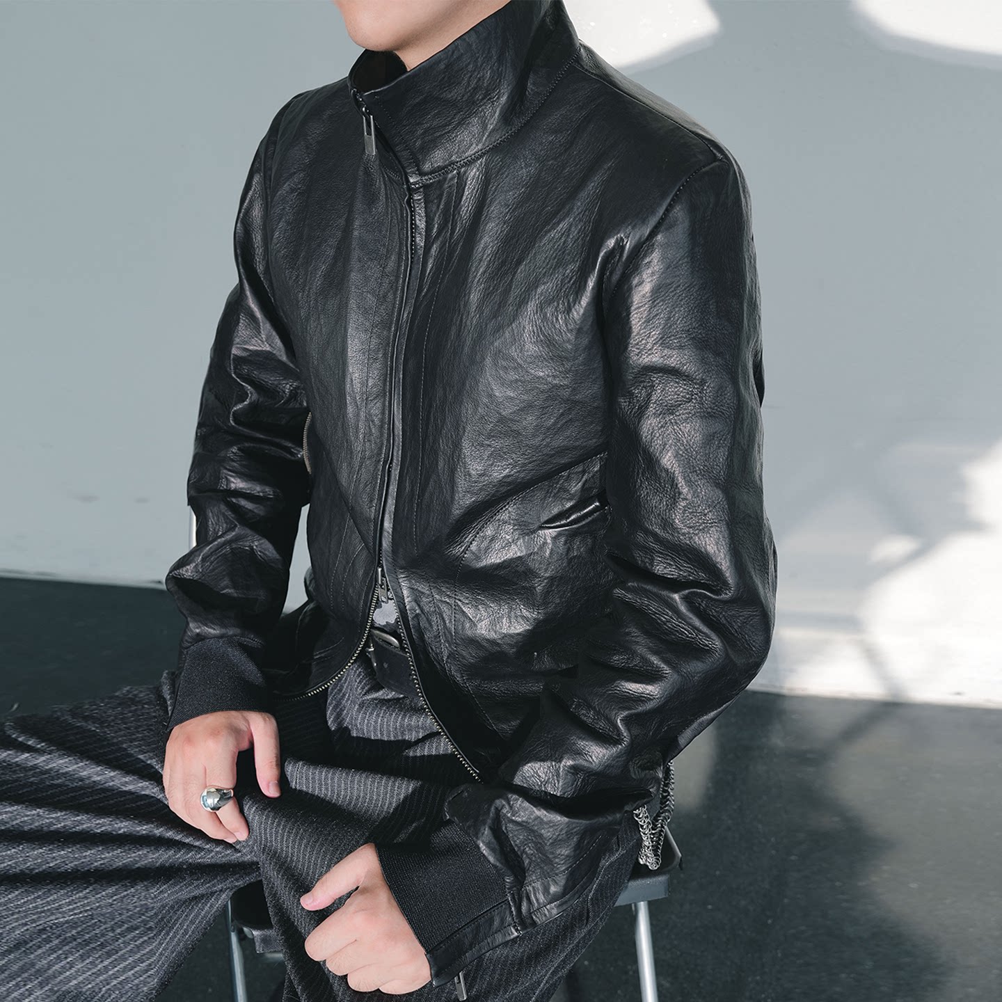 MKSZY Nissan Water-Dyed Cowhide Composite Dupont Lightweight Pleated Leather Jacket