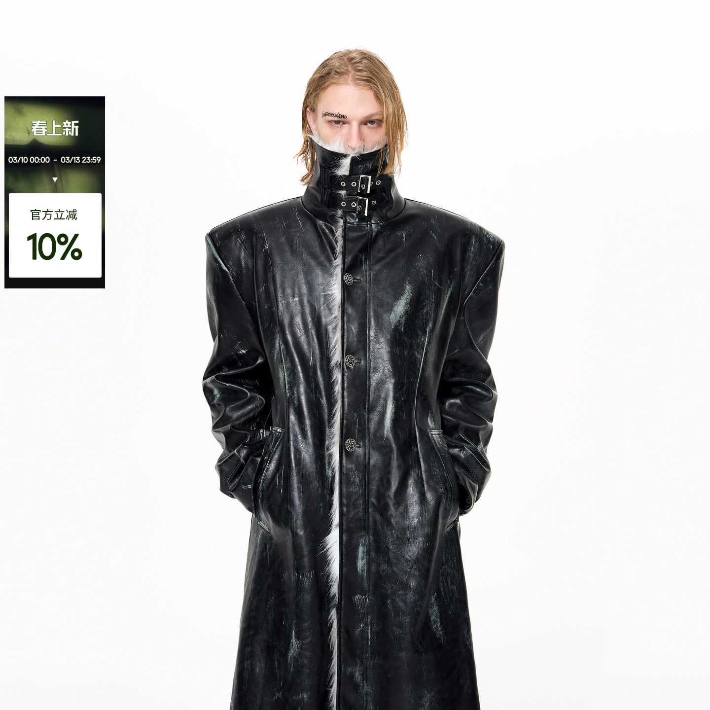 SEE hand-painted dirty long fur coat jacket men's winter stand-up collar breast patchwork fur men's padded trench coat