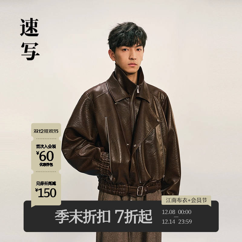 Sketch Men's Wear 2025 Autumn New American Style Imitation Leather Jacket Short Jacket Lapel 9P9A10610