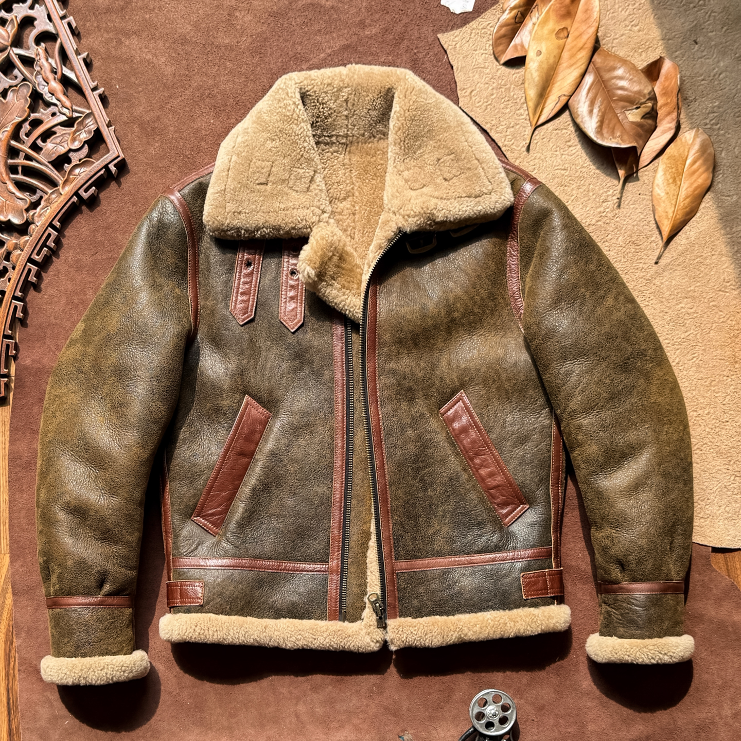 Original merino sheep fur integrated B3 flight suit men's retro winter thickened motorcycle leather jacket