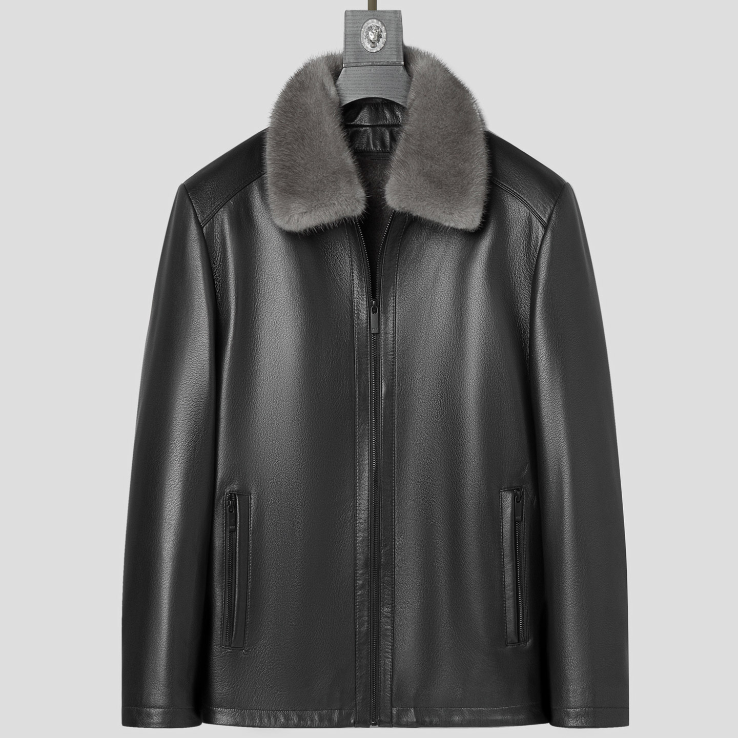 Genuine leather jacket men's mink collar middle-aged top layer cowhide down fur integrated jacket thickened dad pure leather jacket