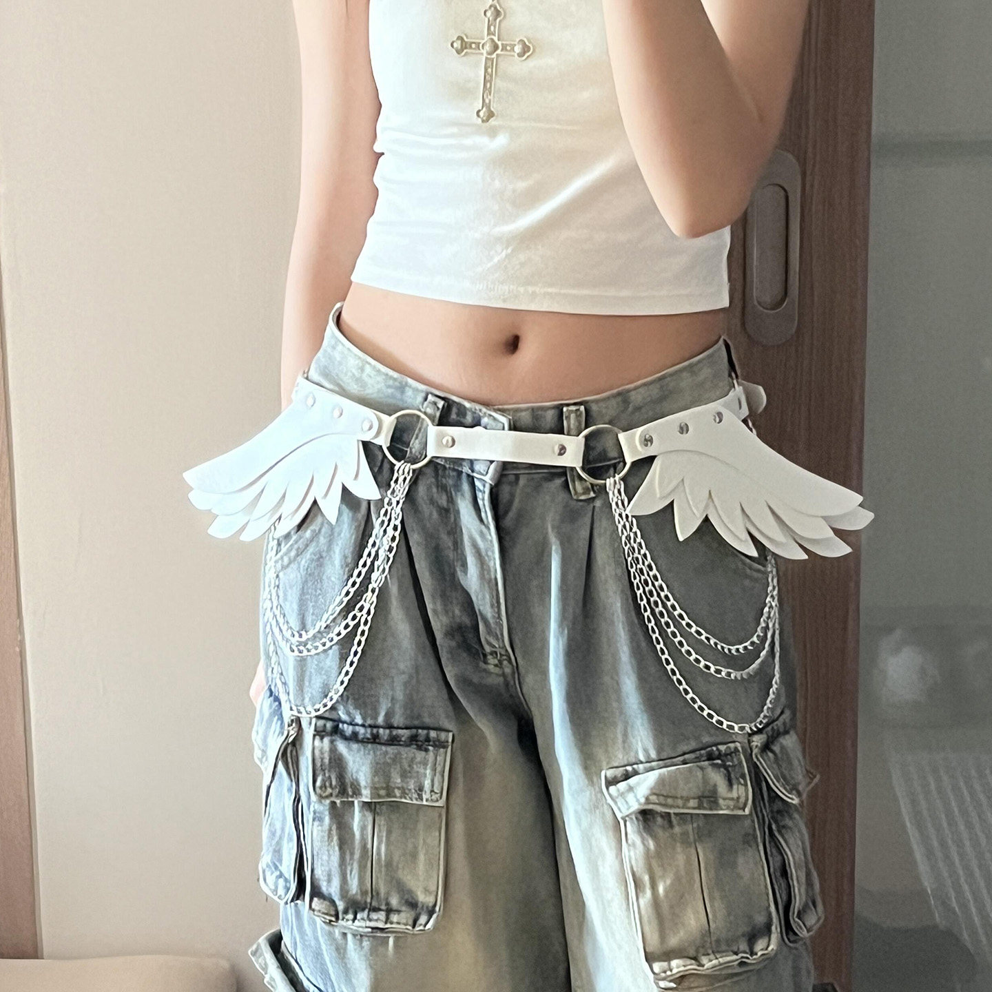 Y2K Sweet Cool Girl Belt Decoration Demon Angel Wings Waist Chain Subculture Spice Girl 2D Belt Accessories