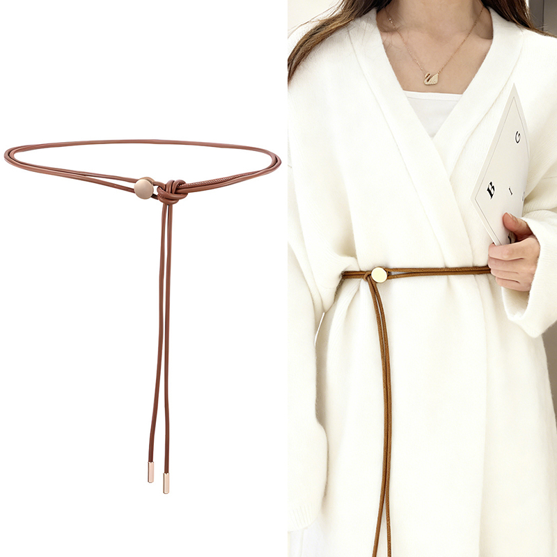 High-end thin belt accessories women's soft leather rope waist chain with skirt black versatile waist rope fashion decoration new style