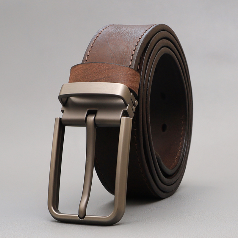 The top layer of pure cowhide belt men's handmade vegetable tanning retro pin buckle men's belt slacks with leather is old-fashioned