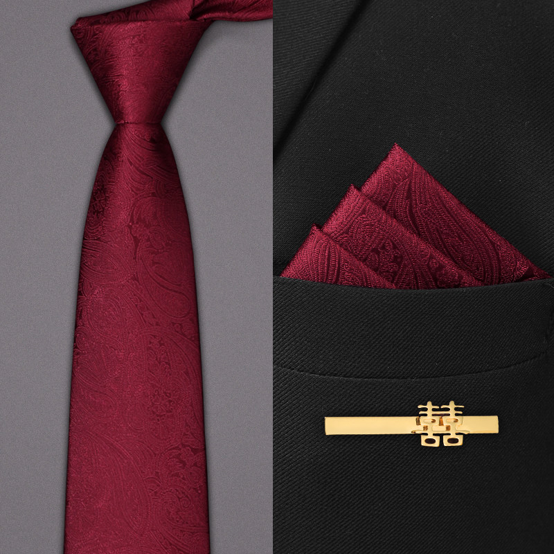 Red cashew flower wedding tie men's zipper groom wedding high-end formal suit business men knot-free