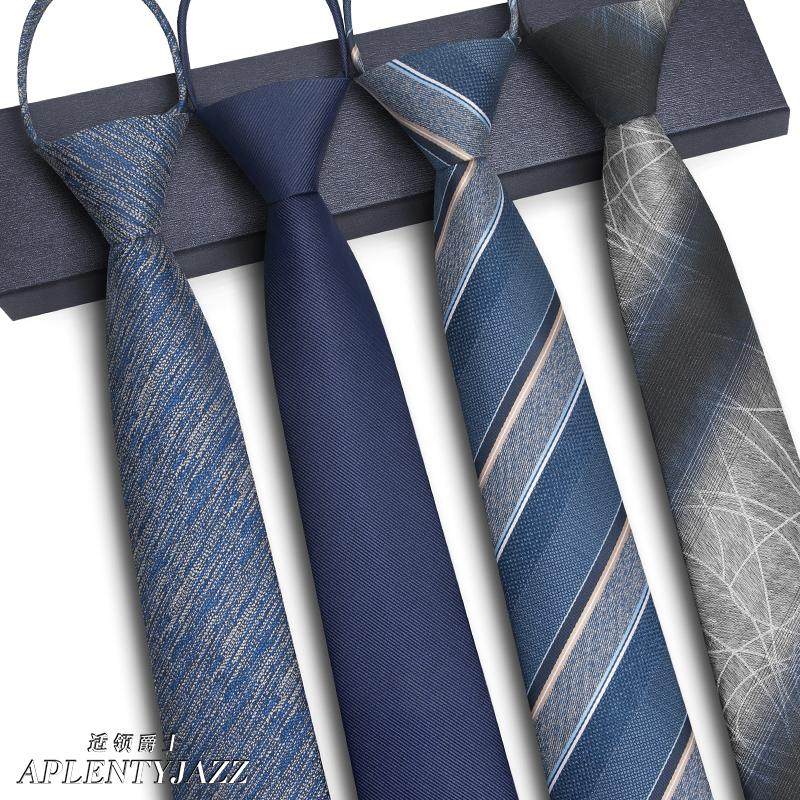 Blue tie men's formal business black gray solid color versatile work suit easy to pull zip tie