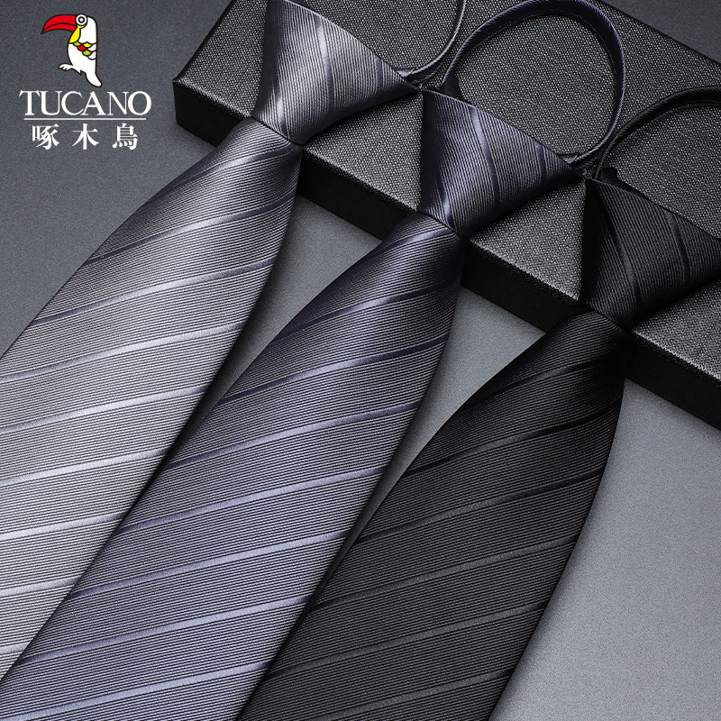 Woodpecker tieless men's black formal business zipper easy pull wedding groom hand beating lazy gray
