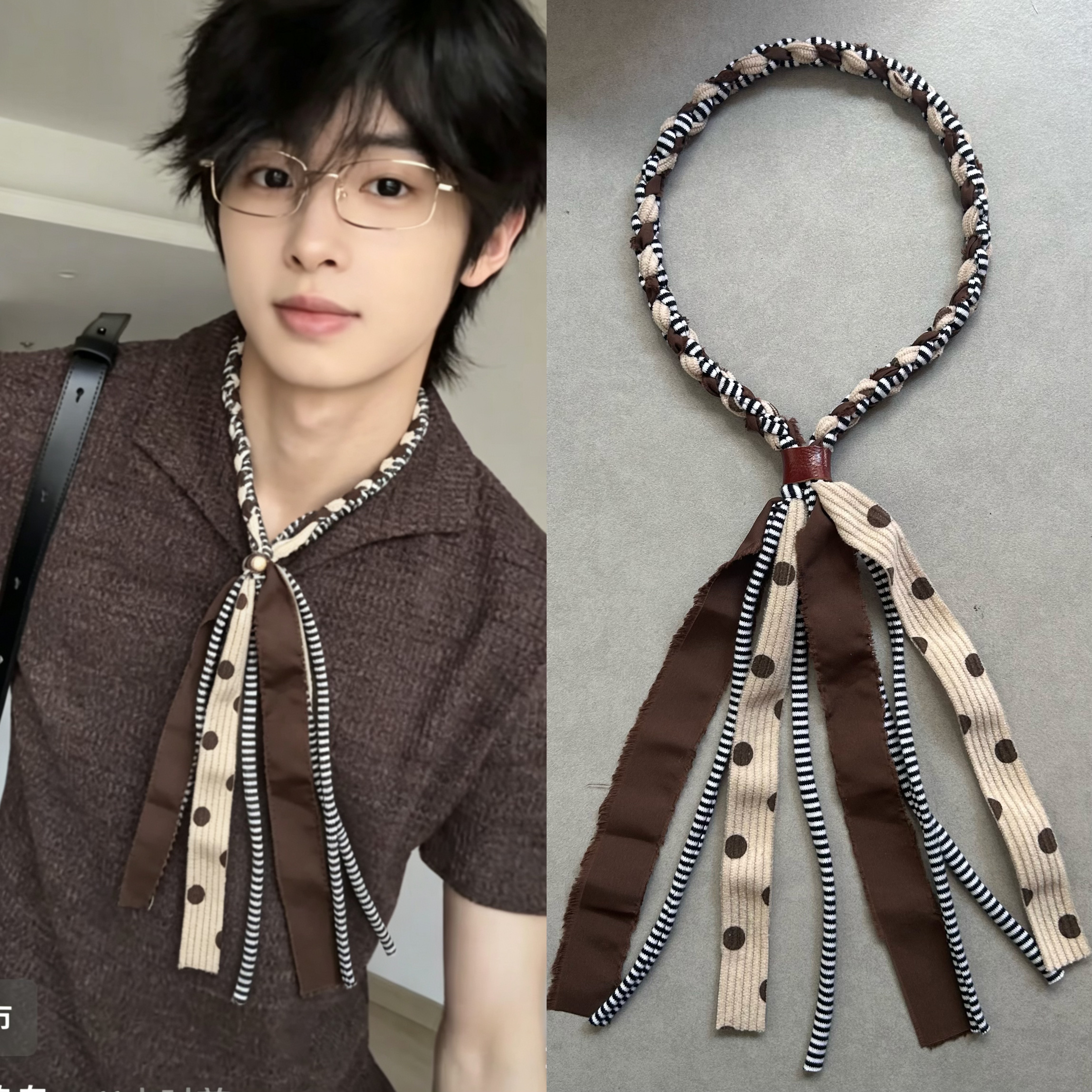 Japanese vintage cloth rope small tie men's and women's vintage personality vintage woven tie vintage scarf silk scarf cloth strip necklace