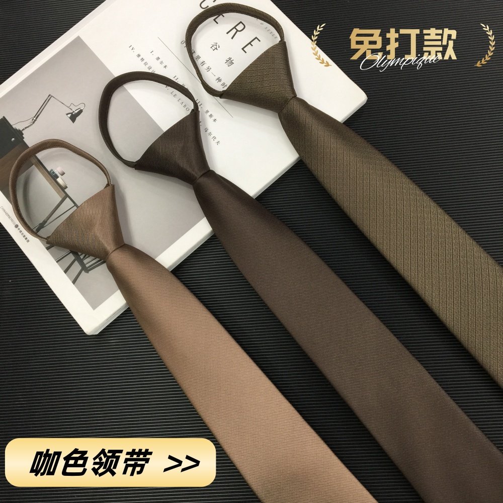 Coffee color zipper tie men's dark coffee light coffee solid color rope-free strap easy pull professional formal groom wedding