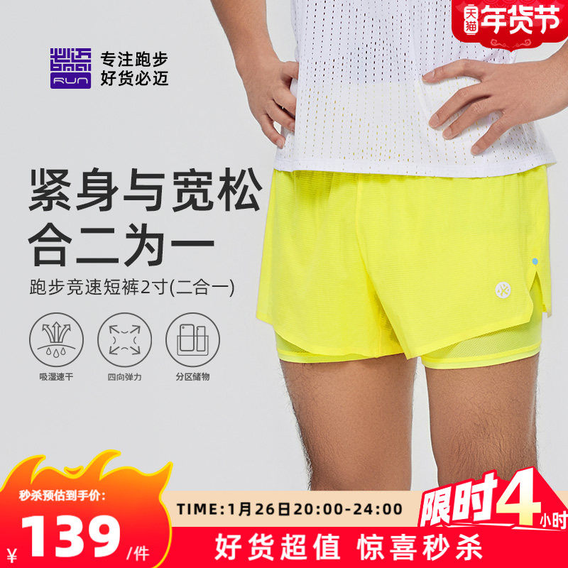 Bimai running racing shorts 2 inch 2-in-1 men's and women's marathon summer breathable quick-drying outdoor sweatpants