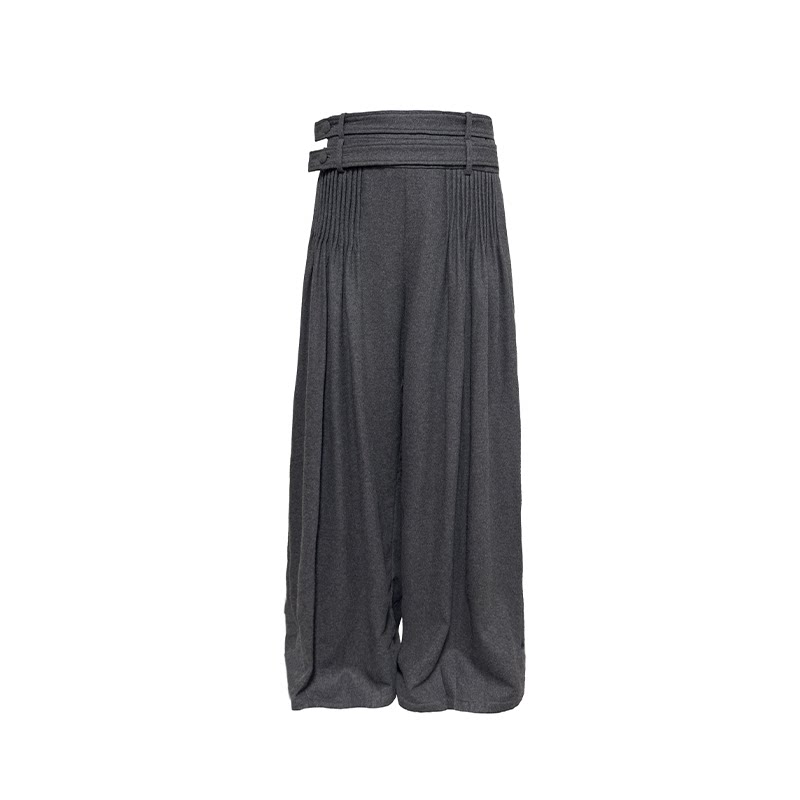 JCAESAR WOOL PANTS double belt toothpick pleated wool trousers wool and cashmere blend straight loose leg