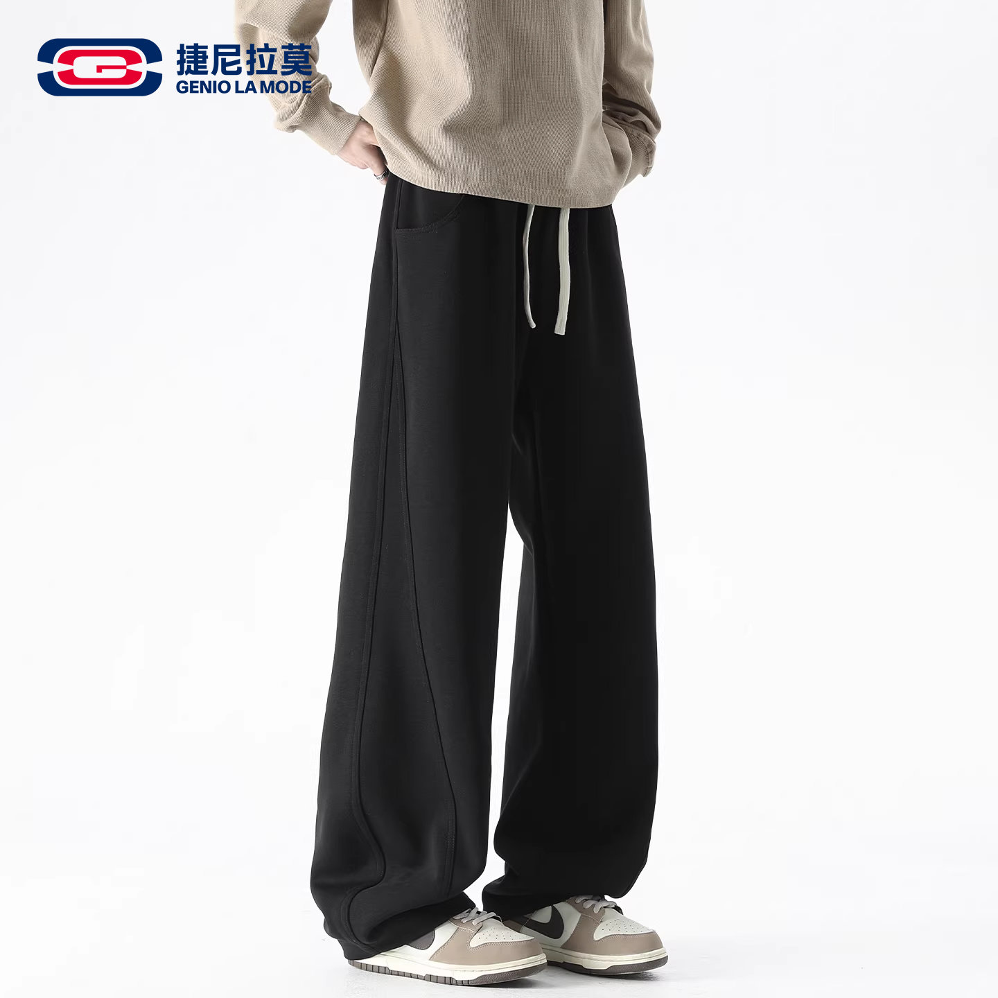 GENIOLAMODE black straight-leg casual pants men's spring new scimitar sweatpants
