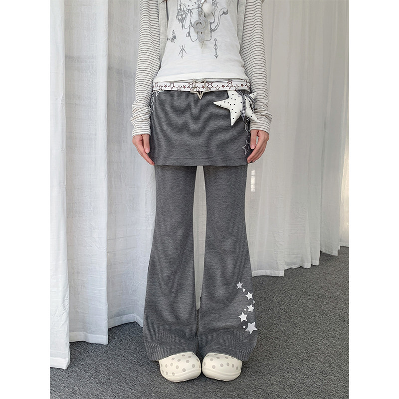 Solkatt light subculture striped cake culotte pants women's new loose straight micro-flared pants casual trousers